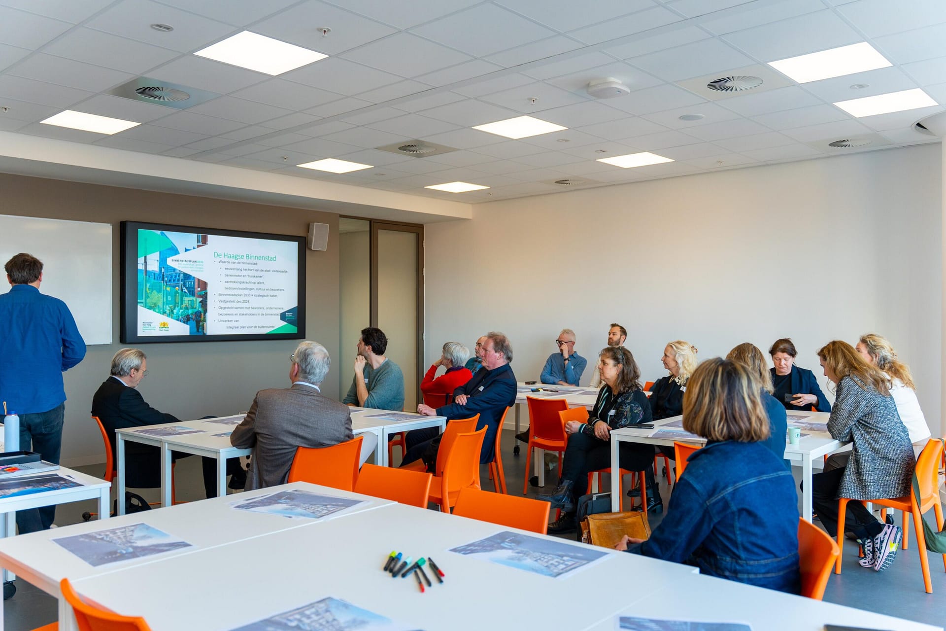 Cultuur en placemaking vormden de rode draad van deze dag – terecht, want er gebeurt veel én er is nog veel meer mogelijk. Er waren inspirerende presentaties: Marloes Sonsma van Re:publiek toonde ons voorbeelden van andere steden en Arno Segeren van de gemeente Den Haag liet ons de veranderingen in de binnenstad zien: gebruikers centraal, meer groen en nieuwe hotspots.